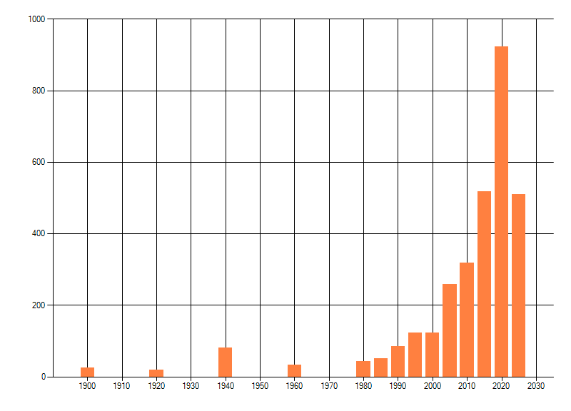 Het aantal atlasblokken (5x5 km) waarin de soort is gemeld binnen een periode van vijf jaar (vanaf 1980) of twintig jaar. Niet gecorrigeerd voor waarnemersinspanning en het aantal doorgegeven waarnemingen kan sterk variëren per periode, dus een trend in verspreiding kan hier niet direct uit worden afgelezen. Het opgegeven jaartal is het eerste jaar van de periode. Bron: gevalideerde waarnemingen uit de NDFF.