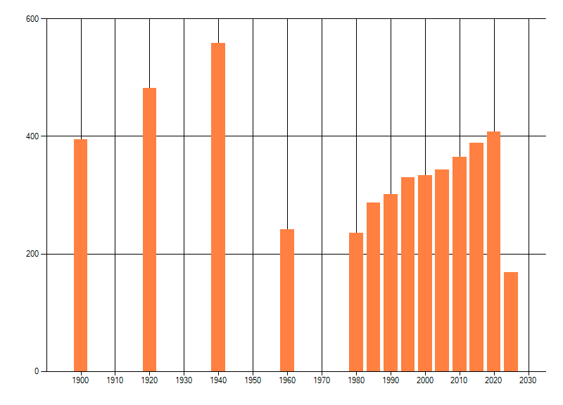 Het aantal atlasblokken (5x5 km) waarin de soort is gemeld binnen een periode van vijf jaar (vanaf 1980) of twintig jaar. Niet gecorrigeerd voor waarnemersinspanning en het aantal doorgegeven waarnemingen kan sterk variëren per periode, dus een trend in verspreiding kan hier niet direct uit worden afgelezen. Het opgegeven jaartal is het eerste jaar van de periode. Bron: gevalideerde waarnemingen uit de NDFF.