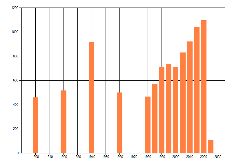 Het aantal atlasblokken (5x5 km) waarin de soort is gemeld binnen een periode van vijf jaar (vanaf 1980) of twintig jaar. Niet gecorrigeerd voor waarnemersinspanning en het aantal doorgegeven waarnemingen kan sterk variëren per periode, dus een trend in verspreiding kan hier niet direct uit worden afgelezen. Het opgegeven jaartal is het eerste jaar van de periode. Bron: gevalideerde waarnemingen uit de NDFF.