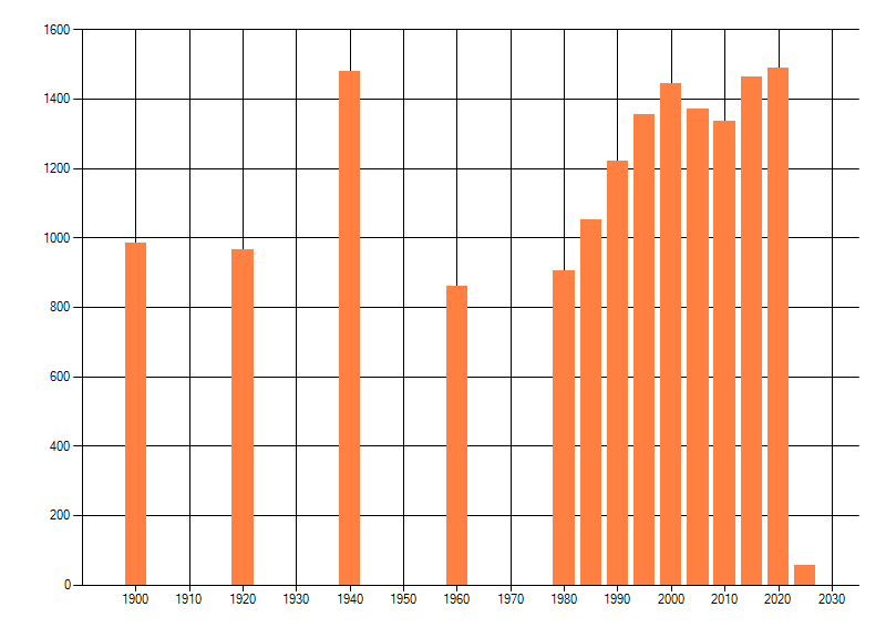 Het aantal atlasblokken (5x5 km) waarin de soort is gemeld binnen een periode van vijf jaar (vanaf 1980) of twintig jaar. Niet gecorrigeerd voor waarnemersinspanning en het aantal doorgegeven waarnemingen kan sterk variëren per periode, dus een trend in verspreiding kan hier niet direct uit worden afgelezen. Het opgegeven jaartal is het eerste jaar van de periode. Bron: gevalideerde waarnemingen uit de NDFF.