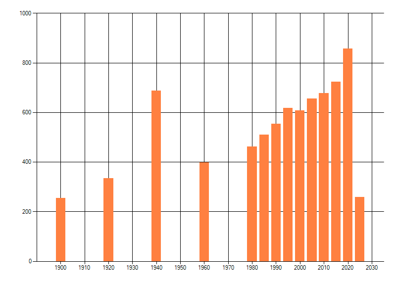 Het aantal atlasblokken (5x5 km) waarin de soort is gemeld binnen een periode van vijf jaar (vanaf 1980) of twintig jaar. Niet gecorrigeerd voor waarnemersinspanning en het aantal doorgegeven waarnemingen kan sterk variëren per periode, dus een trend in verspreiding kan hier niet direct uit worden afgelezen. Het opgegeven jaartal is het eerste jaar van de periode. Bron: gevalideerde waarnemingen uit de NDFF.