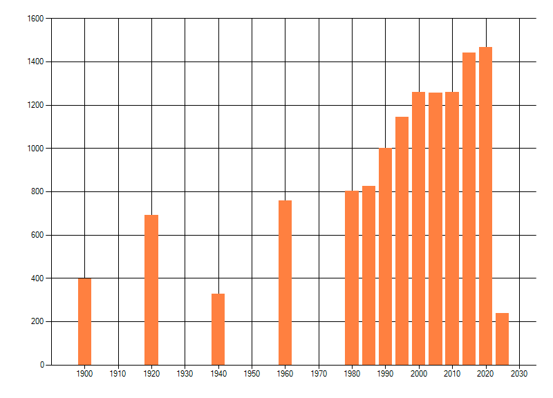 Het aantal atlasblokken (5x5 km) waarin de soort is gemeld binnen een periode van vijf jaar (vanaf 1980) of twintig jaar. Niet gecorrigeerd voor waarnemersinspanning en het aantal doorgegeven waarnemingen kan sterk variëren per periode, dus een trend in verspreiding kan hier niet direct uit worden afgelezen. Het opgegeven jaartal is het eerste jaar van de periode. Bron: gevalideerde waarnemingen uit de NDFF.
