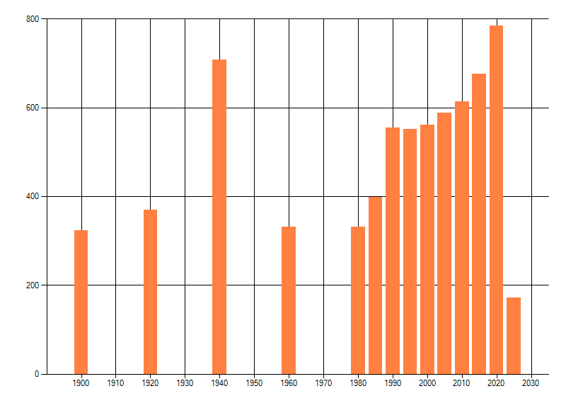 Het aantal atlasblokken (5x5 km) waarin de soort is gemeld binnen een periode van vijf jaar (vanaf 1980) of twintig jaar. Niet gecorrigeerd voor waarnemersinspanning en het aantal doorgegeven waarnemingen kan sterk variëren per periode, dus een trend in verspreiding kan hier niet direct uit worden afgelezen. Het opgegeven jaartal is het eerste jaar van de periode. Bron: gevalideerde waarnemingen uit de NDFF.