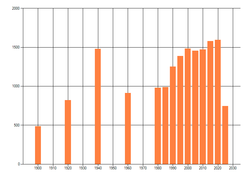 Het aantal atlasblokken (5x5 km) waarin de soort is gemeld binnen een periode van vijf jaar (vanaf 1980) of twintig jaar. Niet gecorrigeerd voor waarnemersinspanning en het aantal doorgegeven waarnemingen kan sterk variƫren per periode, dus een trend in verspreiding kan hier niet direct uit worden afgelezen. Het opgegeven jaartal is het eerste jaar van de periode. Bron: gevalideerde waarnemingen uit de NDFF.