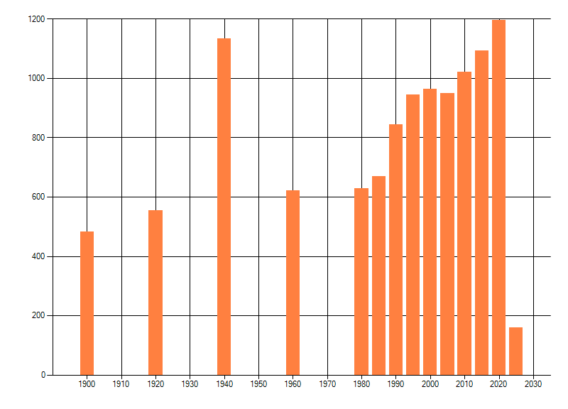 Het aantal atlasblokken (5x5 km) waarin de soort is gemeld binnen een periode van vijf jaar (vanaf 1980) of twintig jaar. Niet gecorrigeerd voor waarnemersinspanning en het aantal doorgegeven waarnemingen kan sterk variëren per periode, dus een trend in verspreiding kan hier niet direct uit worden afgelezen. Het opgegeven jaartal is het eerste jaar van de periode. Bron: gevalideerde waarnemingen uit de NDFF.