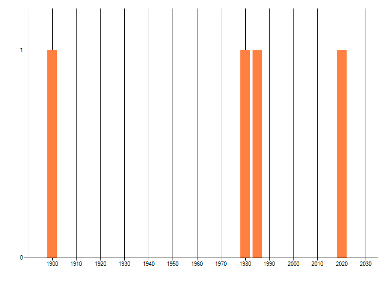 Het aantal atlasblokken (5x5 km) waarin de soort is gemeld binnen een periode van vijf jaar (vanaf 1980) of twintig jaar. Niet gecorrigeerd voor waarnemersinspanning en het aantal doorgegeven waarnemingen kan sterk variëren per periode, dus een trend in verspreiding kan hier niet direct uit worden afgelezen. Het opgegeven jaartal is het eerste jaar van de periode. Bron: gevalideerde waarnemingen uit de NDFF.
