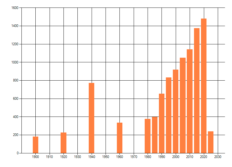Het aantal atlasblokken (5x5 km) waarin de soort is gemeld binnen een periode van vijf jaar (vanaf 1980) of twintig jaar. Niet gecorrigeerd voor waarnemersinspanning en het aantal doorgegeven waarnemingen kan sterk variëren per periode, dus een trend in verspreiding kan hier niet direct uit worden afgelezen. Het opgegeven jaartal is het eerste jaar van de periode. Bron: gevalideerde waarnemingen uit de NDFF.