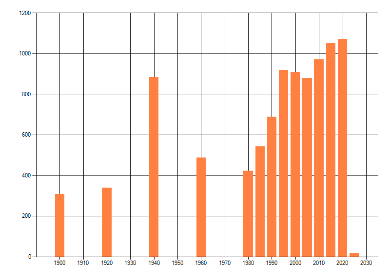 Het aantal atlasblokken (5x5 km) waarin de soort is gemeld binnen een periode van vijf jaar (vanaf 1980) of twintig jaar. Niet gecorrigeerd voor waarnemersinspanning en het aantal doorgegeven waarnemingen kan sterk variëren per periode, dus een trend in verspreiding kan hier niet direct uit worden afgelezen. Het opgegeven jaartal is het eerste jaar van de periode. Bron: gevalideerde waarnemingen uit de NDFF.