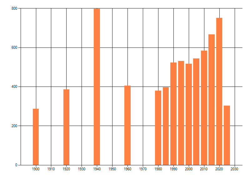 Het aantal atlasblokken (5x5 km) waarin de soort is gemeld binnen een periode van vijf jaar (vanaf 1980) of twintig jaar. Niet gecorrigeerd voor waarnemersinspanning en het aantal doorgegeven waarnemingen kan sterk variëren per periode, dus een trend in verspreiding kan hier niet direct uit worden afgelezen. Het opgegeven jaartal is het eerste jaar van de periode. Bron: gevalideerde waarnemingen uit de NDFF.