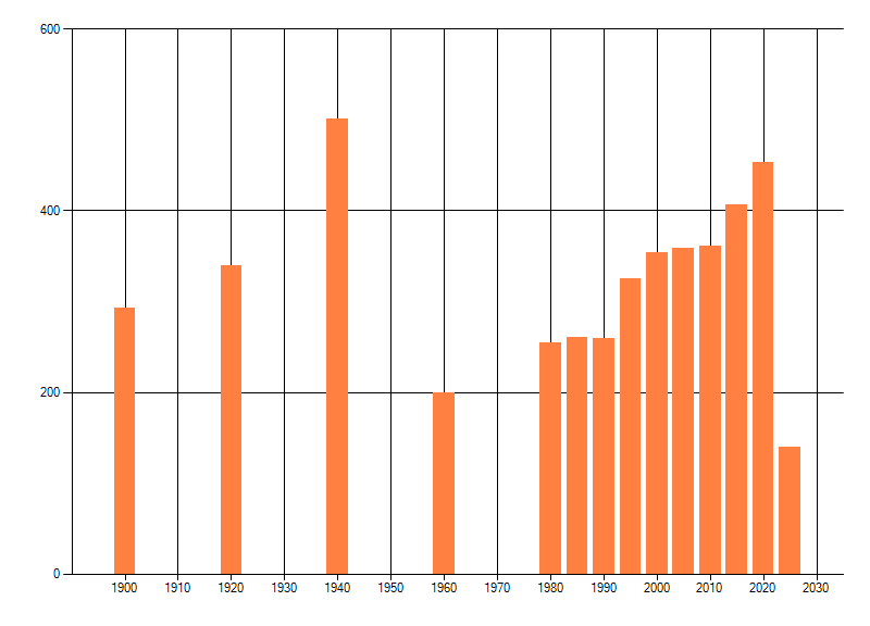 Het aantal atlasblokken (5x5 km) waarin de soort is gemeld binnen een periode van vijf jaar (vanaf 1980) of twintig jaar. Niet gecorrigeerd voor waarnemersinspanning en het aantal doorgegeven waarnemingen kan sterk variëren per periode, dus een trend in verspreiding kan hier niet direct uit worden afgelezen. Het opgegeven jaartal is het eerste jaar van de periode. Bron: gevalideerde waarnemingen uit de NDFF.