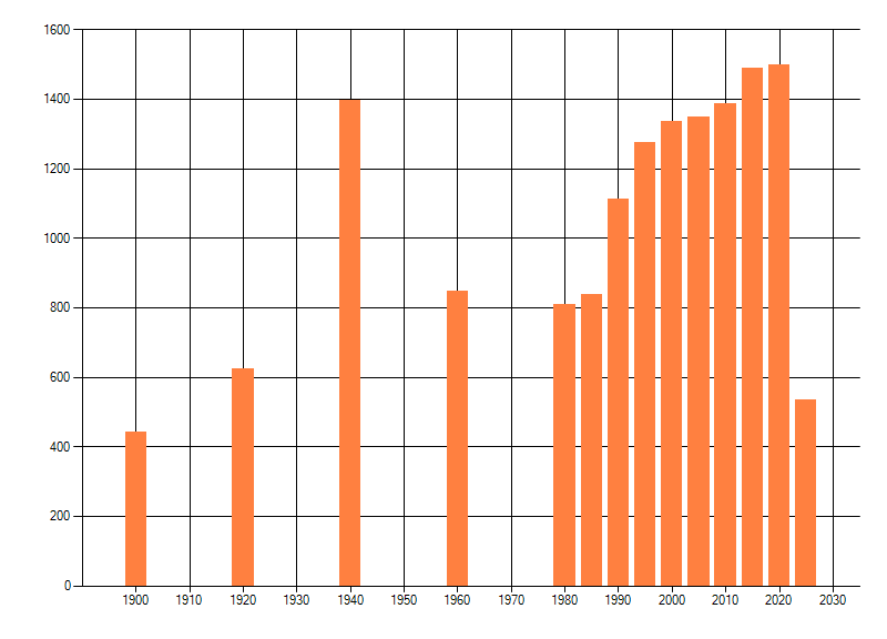 Het aantal atlasblokken (5x5 km) waarin de soort is gemeld binnen een periode van vijf jaar (vanaf 1980) of twintig jaar. Niet gecorrigeerd voor waarnemersinspanning en het aantal doorgegeven waarnemingen kan sterk variëren per periode, dus een trend in verspreiding kan hier niet direct uit worden afgelezen. Het opgegeven jaartal is het eerste jaar van de periode. Bron: gevalideerde waarnemingen uit de NDFF.