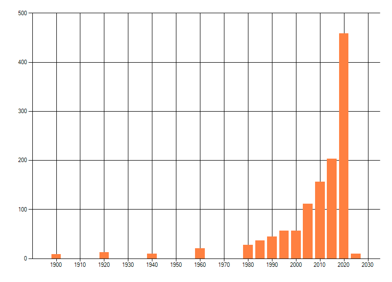 Het aantal atlasblokken (5x5 km) waarin de soort is gemeld binnen een periode van vijf jaar (vanaf 1980) of twintig jaar. Niet gecorrigeerd voor waarnemersinspanning en het aantal doorgegeven waarnemingen kan sterk variëren per periode, dus een trend in verspreiding kan hier niet direct uit worden afgelezen. Het opgegeven jaartal is het eerste jaar van de periode. Bron: gevalideerde waarnemingen uit de NDFF.