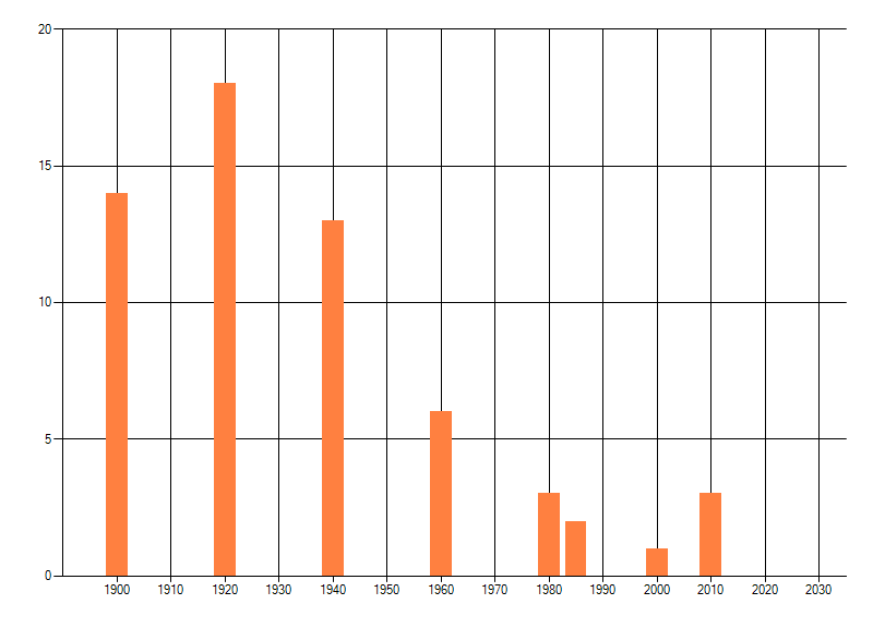 Het aantal atlasblokken (5x5 km) waarin de soort is gemeld binnen een periode van vijf jaar (vanaf 1980) of twintig jaar. Niet gecorrigeerd voor waarnemersinspanning en het aantal doorgegeven waarnemingen kan sterk variëren per periode, dus een trend in verspreiding kan hier niet direct uit worden afgelezen. Het opgegeven jaartal is het eerste jaar van de periode. Bron: gevalideerde waarnemingen uit de NDFF.