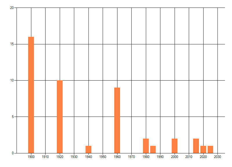 Het aantal atlasblokken (5x5 km) waarin de soort is gemeld binnen een periode van vijf jaar (vanaf 1980) of twintig jaar. Niet gecorrigeerd voor waarnemersinspanning en het aantal doorgegeven waarnemingen kan sterk variëren per periode, dus een trend in verspreiding kan hier niet direct uit worden afgelezen. Het opgegeven jaartal is het eerste jaar van de periode. Bron: gevalideerde waarnemingen uit de NDFF.