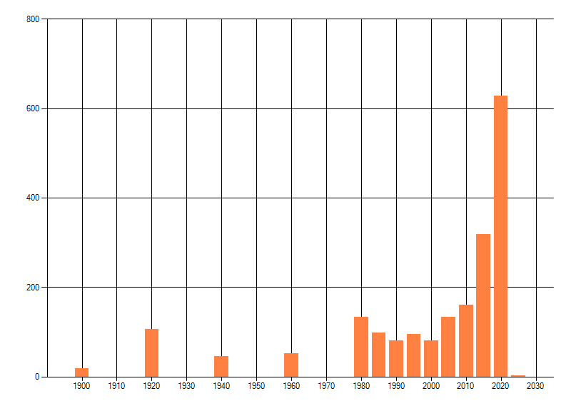 Het aantal atlasblokken (5x5 km) waarin de soort is gemeld binnen een periode van vijf jaar (vanaf 1980) of twintig jaar. Niet gecorrigeerd voor waarnemersinspanning en het aantal doorgegeven waarnemingen kan sterk variëren per periode, dus een trend in verspreiding kan hier niet direct uit worden afgelezen. Het opgegeven jaartal is het eerste jaar van de periode. Bron: gevalideerde waarnemingen uit de NDFF.