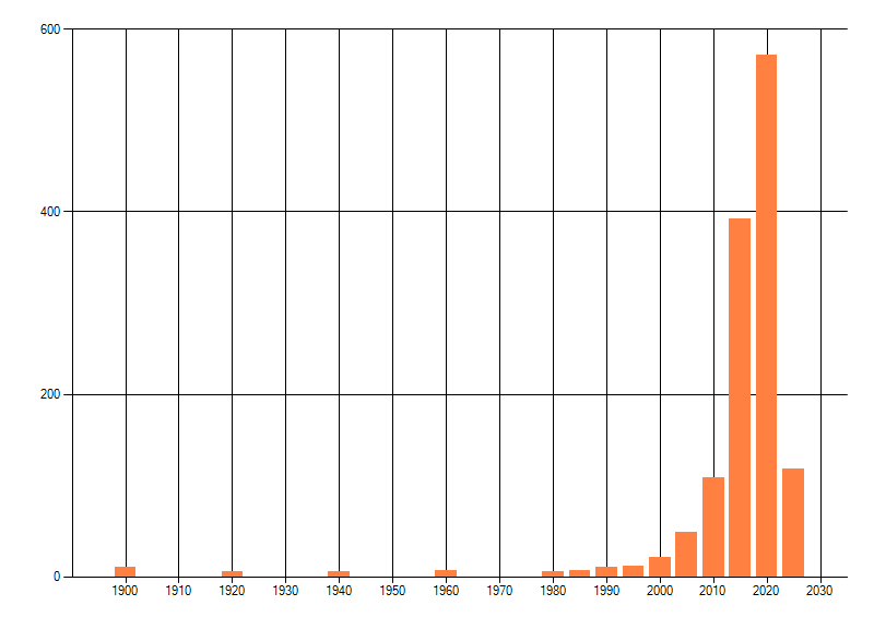 Het aantal atlasblokken (5x5 km) waarin de soort is gemeld binnen een periode van vijf jaar (vanaf 1980) of twintig jaar. Niet gecorrigeerd voor waarnemersinspanning en het aantal doorgegeven waarnemingen kan sterk variëren per periode, dus een trend in verspreiding kan hier niet direct uit worden afgelezen. Het opgegeven jaartal is het eerste jaar van de periode. Bron: gevalideerde waarnemingen uit de NDFF.