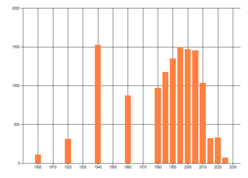 Het aantal atlasblokken (5x5 km) waarin de soort is gemeld binnen een periode van vijf jaar (vanaf 1980) of twintig jaar. Niet gecorrigeerd voor waarnemersinspanning en het aantal doorgegeven waarnemingen kan sterk variëren per periode, dus een trend in verspreiding kan hier niet direct uit worden afgelezen. Het opgegeven jaartal is het eerste jaar van de periode. Bron: gevalideerde waarnemingen uit de NDFF.