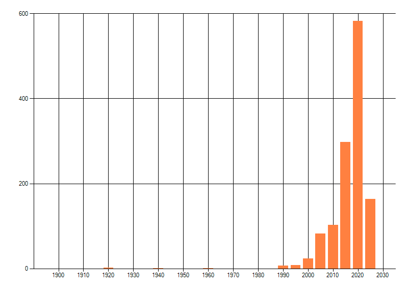 Het aantal atlasblokken (5x5 km) waarin de soort is gemeld binnen een periode van vijf jaar (vanaf 1980) of twintig jaar. Niet gecorrigeerd voor waarnemersinspanning en het aantal doorgegeven waarnemingen kan sterk variëren per periode, dus een trend in verspreiding kan hier niet direct uit worden afgelezen. Het opgegeven jaartal is het eerste jaar van de periode. Bron: gevalideerde waarnemingen uit de NDFF.