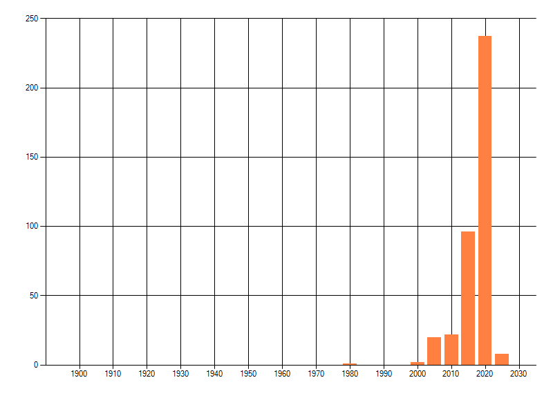 Het aantal atlasblokken (5x5 km) waarin de soort is gemeld binnen een periode van vijf jaar (vanaf 1980) of twintig jaar. Niet gecorrigeerd voor waarnemersinspanning en het aantal doorgegeven waarnemingen kan sterk variëren per periode, dus een trend in verspreiding kan hier niet direct uit worden afgelezen. Het opgegeven jaartal is het eerste jaar van de periode. Bron: gevalideerde waarnemingen uit de NDFF.