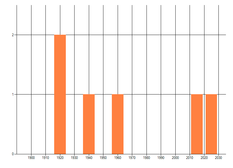 Het aantal atlasblokken (5x5 km) waarin de soort is gemeld binnen een periode van vijf jaar (vanaf 1980) of twintig jaar. Niet gecorrigeerd voor waarnemersinspanning en het aantal doorgegeven waarnemingen kan sterk variëren per periode, dus een trend in verspreiding kan hier niet direct uit worden afgelezen. Het opgegeven jaartal is het eerste jaar van de periode. Bron: gevalideerde waarnemingen uit de NDFF.