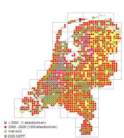 Bron: FLORON - Gemodelleerd op basis van waarnemingen uit de NDFF voor de periode 2000-2021.