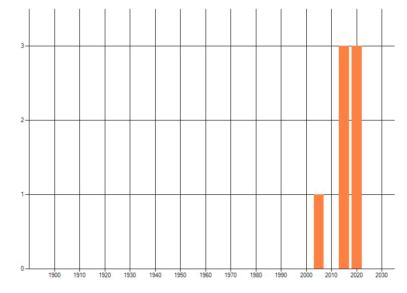 Het aantal atlasblokken (5x5 km) waarin de soort is gemeld binnen een periode van vijf jaar (vanaf 1980) of twintig jaar. Niet gecorrigeerd voor waarnemersinspanning en het aantal doorgegeven waarnemingen kan sterk variëren per periode, dus een trend in verspreiding kan hier niet direct uit worden afgelezen. Het opgegeven jaartal is het eerste jaar van de periode. Bron: gevalideerde waarnemingen uit de NDFF.