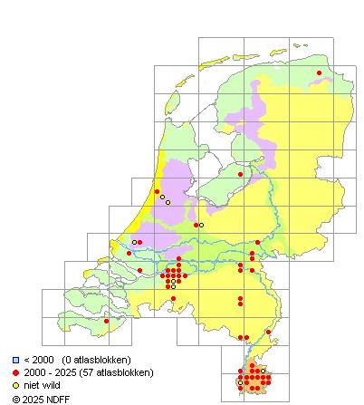 Bron: FLORON - Gemodelleerd op basis van waarnemingen uit de NDFF voor de periode 2000-2021.