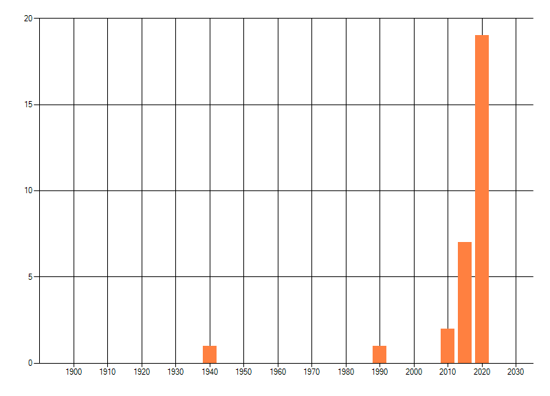 dus een trend in verspreiding kan hier niet direct uit worden afgelezen. Het opgegeven jaartal is het eerste jaar van de