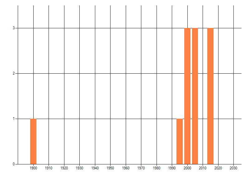 Het aantal atlasblokken (5x5 km) waarin de soort is gemeld binnen een periode van vijf jaar (vanaf 1980) of twintig jaar. Niet gecorrigeerd voor waarnemersinspanning en het aantal doorgegeven waarnemingen kan sterk variëren per periode, dus een trend in verspreiding kan hier niet direct uit worden afgelezen. Het opgegeven jaartal is het eerste jaar van de periode. Bron: gevalideerde waarnemingen uit de NDFF.