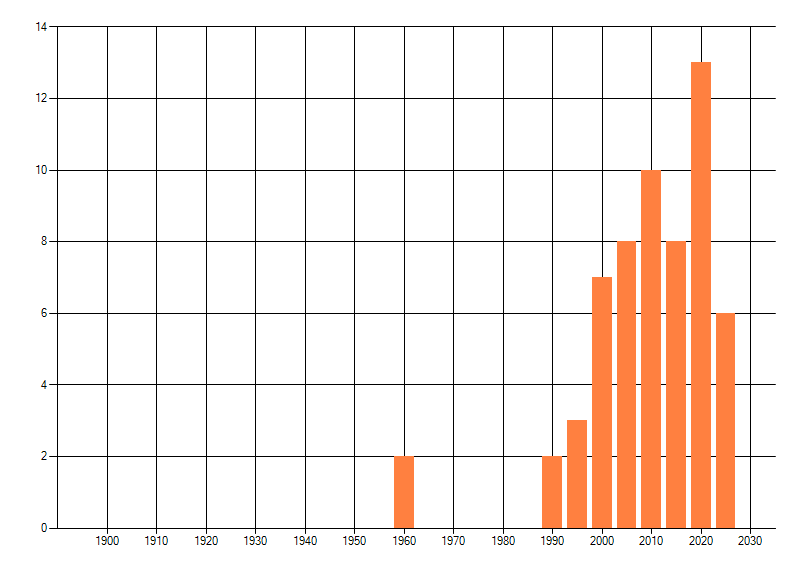 Het aantal atlasblokken (5x5 km) waarin de soort is gemeld binnen een periode van vijf jaar (vanaf 1980) of twintig jaar. Niet gecorrigeerd voor waarnemersinspanning en het aantal doorgegeven waarnemingen kan sterk variëren per periode, dus een trend in verspreiding kan hier niet direct uit worden afgelezen. Het opgegeven jaartal is het eerste jaar van de periode. Bron: gevalideerde waarnemingen uit de NDFF.