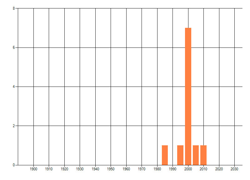Het aantal atlasblokken (5x5 km) waarin de soort is gemeld binnen een periode van vijf jaar (vanaf 1980) of twintig jaar. Niet gecorrigeerd voor waarnemersinspanning en het aantal doorgegeven waarnemingen kan sterk variëren per periode, dus een trend in verspreiding kan hier niet direct uit worden afgelezen. Het opgegeven jaartal is het eerste jaar van de periode. Bron: gevalideerde waarnemingen uit de NDFF.