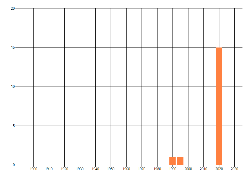 Het aantal atlasblokken (5x5 km) waarin de soort is gemeld binnen een periode van vijf jaar (vanaf 1980) of twintig jaar. Niet gecorrigeerd voor waarnemersinspanning en het aantal doorgegeven waarnemingen kan sterk variëren per periode, dus een trend in verspreiding kan hier niet direct uit worden afgelezen. Het opgegeven jaartal is het eerste jaar van de periode. Bron: gevalideerde waarnemingen uit de NDFF.