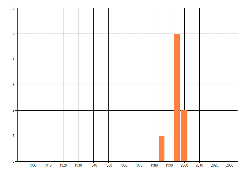 Het aantal atlasblokken (5x5 km) waarin de soort is gemeld binnen een periode van vijf jaar (vanaf 1980) of twintig jaar. Niet gecorrigeerd voor waarnemersinspanning en het aantal doorgegeven waarnemingen kan sterk variëren per periode, dus een trend in verspreiding kan hier niet direct uit worden afgelezen. Het opgegeven jaartal is het eerste jaar van de periode. Bron: gevalideerde waarnemingen uit de NDFF.