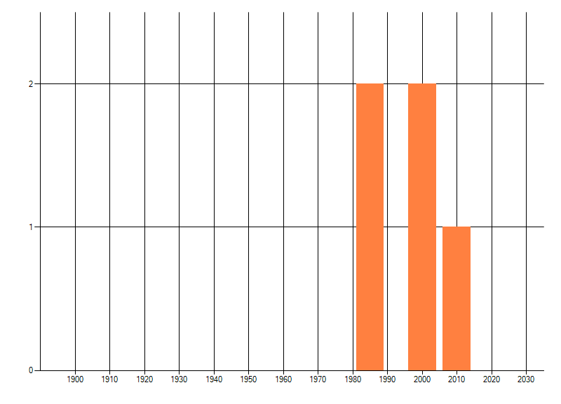 Het aantal atlasblokken (5x5 km) waarin de soort is gemeld binnen een periode van vijf jaar (vanaf 1980) of twintig jaar. Niet gecorrigeerd voor waarnemersinspanning en het aantal doorgegeven waarnemingen kan sterk variëren per periode, dus een trend in verspreiding kan hier niet direct uit worden afgelezen. Het opgegeven jaartal is het eerste jaar van de periode. Bron: gevalideerde waarnemingen uit de NDFF.
