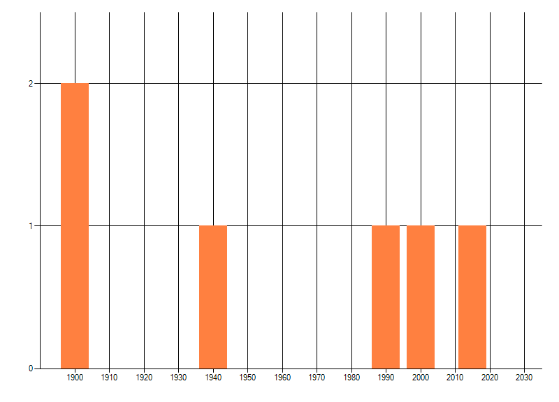 Het aantal atlasblokken (5x5 km) waarin de soort is gemeld binnen een periode van vijf jaar (vanaf 1980) of twintig jaar. Niet gecorrigeerd voor waarnemersinspanning en het aantal doorgegeven waarnemingen kan sterk variëren per periode, dus een trend in verspreiding kan hier niet direct uit worden afgelezen. Het opgegeven jaartal is het eerste jaar van de periode. Bron: gevalideerde waarnemingen uit de NDFF.