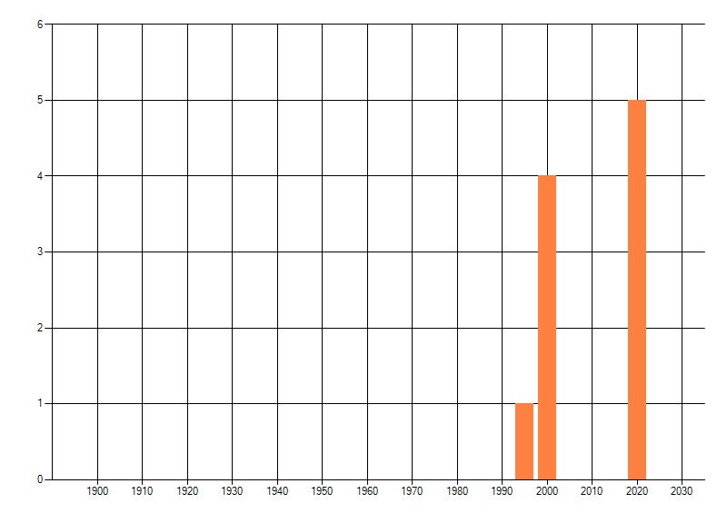 Het aantal atlasblokken (5x5 km) waarin de soort is gemeld binnen een periode van vijf jaar (vanaf 1980) of twintig jaar. Niet gecorrigeerd voor waarnemersinspanning en het aantal doorgegeven waarnemingen kan sterk variëren per periode, dus een trend in verspreiding kan hier niet direct uit worden afgelezen. Het opgegeven jaartal is het eerste jaar van de periode. Bron: gevalideerde waarnemingen uit de NDFF.