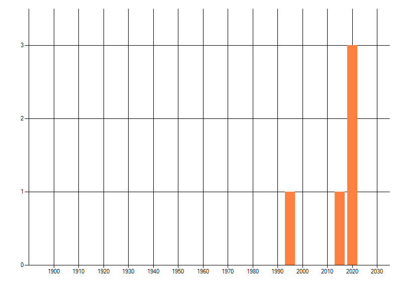 Het aantal atlasblokken (5x5 km) waarin de soort is gemeld binnen een periode van vijf jaar (vanaf 1980) of twintig jaar. Niet gecorrigeerd voor waarnemersinspanning en het aantal doorgegeven waarnemingen kan sterk variëren per periode, dus een trend in verspreiding kan hier niet direct uit worden afgelezen. Het opgegeven jaartal is het eerste jaar van de periode. Bron: gevalideerde waarnemingen uit de NDFF.