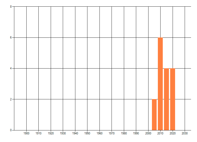 Het aantal atlasblokken (5x5 km) waarin de soort is gemeld binnen een periode van vijf jaar (vanaf 1980) of twintig jaar. Niet gecorrigeerd voor waarnemersinspanning en het aantal doorgegeven waarnemingen kan sterk variëren per periode, dus een trend in verspreiding kan hier niet direct uit worden afgelezen. Het opgegeven jaartal is het eerste jaar van de periode. Bron: gevalideerde waarnemingen uit de NDFF.