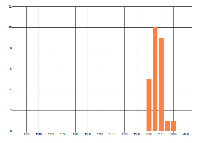 Het aantal atlasblokken (5x5 km) waarin de soort is gemeld binnen een periode van vijf jaar (vanaf 1980) of twintig jaar. Niet gecorrigeerd voor waarnemersinspanning en het aantal doorgegeven waarnemingen kan sterk variëren per periode, dus een trend in verspreiding kan hier niet direct uit worden afgelezen. Het opgegeven jaartal is het eerste jaar van de periode. Bron: gevalideerde waarnemingen uit de NDFF.