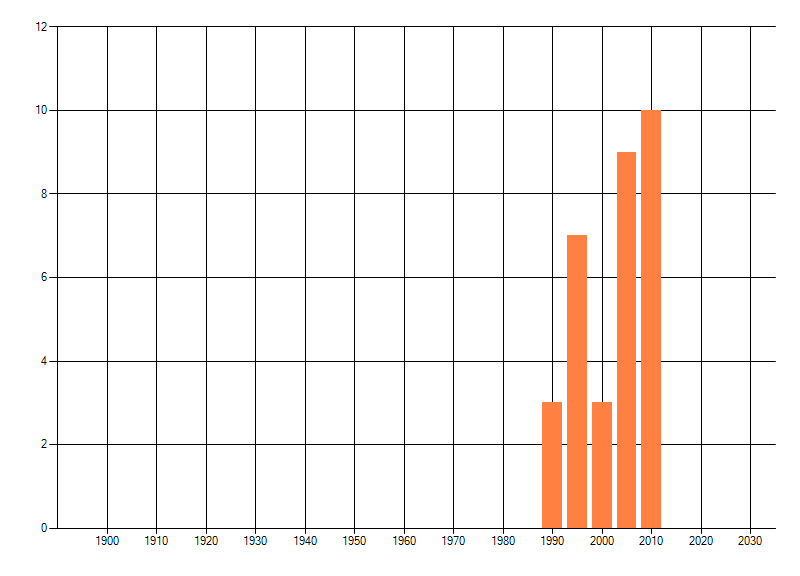 Het aantal atlasblokken (5x5 km) waarin de soort is gemeld binnen een periode van vijf jaar (vanaf 1980) of twintig jaar. Niet gecorrigeerd voor waarnemersinspanning en het aantal doorgegeven waarnemingen kan sterk variëren per periode, dus een trend in verspreiding kan hier niet direct uit worden afgelezen. Het opgegeven jaartal is het eerste jaar van de periode. Bron: gevalideerde waarnemingen uit de NDFF.