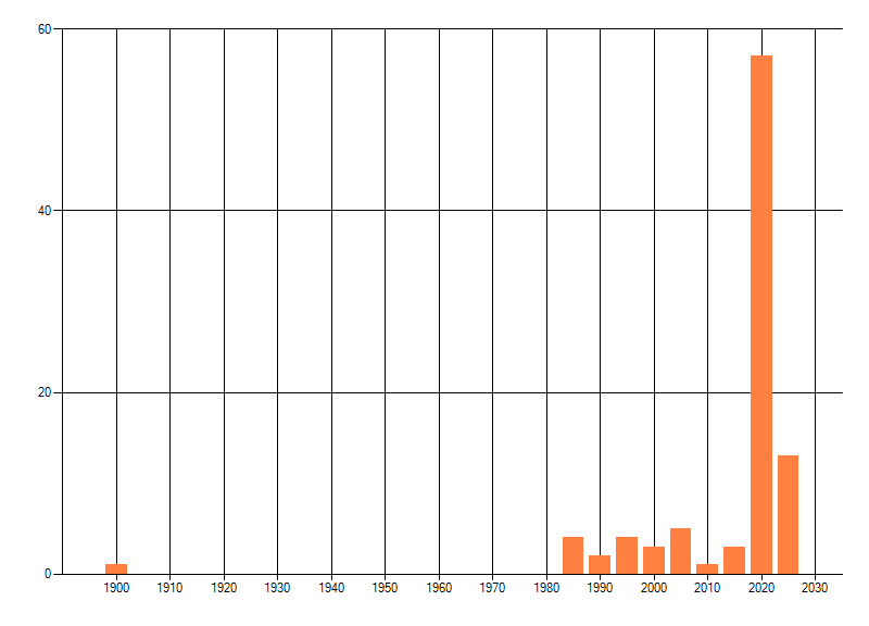 Het aantal atlasblokken (5x5 km) waarin de soort is gemeld binnen een periode van vijf jaar (vanaf 1980) of twintig jaar. Niet gecorrigeerd voor waarnemersinspanning en het aantal doorgegeven waarnemingen kan sterk variëren per periode, dus een trend in verspreiding kan hier niet direct uit worden afgelezen. Het opgegeven jaartal is het eerste jaar van de periode. Bron: gevalideerde waarnemingen uit de NDFF.