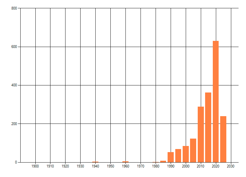 Het aantal atlasblokken (5x5 km) waarin de soort is gemeld binnen een periode van vijf jaar (vanaf 1980) of twintig jaar. Niet gecorrigeerd voor waarnemersinspanning en het aantal doorgegeven waarnemingen kan sterk variëren per periode, dus een trend in verspreiding kan hier niet direct uit worden afgelezen. Het opgegeven jaartal is het eerste jaar van de periode. Bron: gevalideerde waarnemingen uit de NDFF.