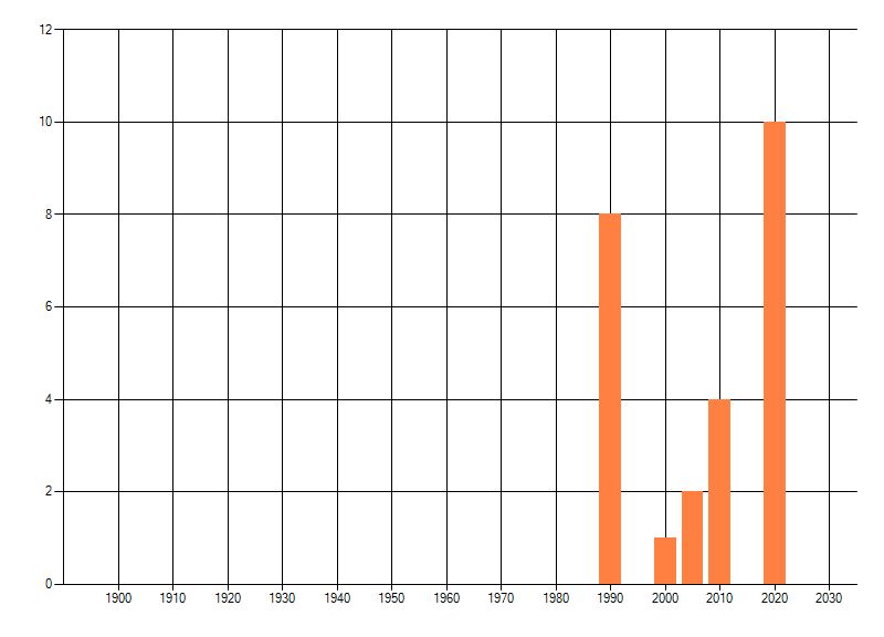 Het aantal atlasblokken (5x5 km) waarin de soort is gemeld binnen een periode van vijf jaar (vanaf 1980) of twintig jaar. Niet gecorrigeerd voor waarnemersinspanning en het aantal doorgegeven waarnemingen kan sterk variëren per periode, dus een trend in verspreiding kan hier niet direct uit worden afgelezen. Het opgegeven jaartal is het eerste jaar van de periode. Bron: gevalideerde waarnemingen uit de NDFF.