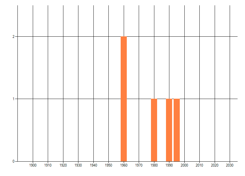 Het aantal atlasblokken (5x5 km) waarin de soort is gemeld binnen een periode van vijf jaar (vanaf 1980) of twintig jaar. Niet gecorrigeerd voor waarnemersinspanning en het aantal doorgegeven waarnemingen kan sterk variëren per periode, dus een trend in verspreiding kan hier niet direct uit worden afgelezen. Het opgegeven jaartal is het eerste jaar van de periode. Bron: gevalideerde waarnemingen uit de NDFF.