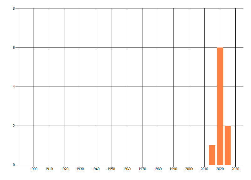 Het aantal atlasblokken (5x5 km) waarin de soort is gemeld binnen een periode van vijf jaar (vanaf 1980) of twintig jaar. Niet gecorrigeerd voor waarnemersinspanning en het aantal doorgegeven waarnemingen kan sterk variëren per periode, dus een trend in verspreiding kan hier niet direct uit worden afgelezen. Het opgegeven jaartal is het eerste jaar van de periode. Bron: gevalideerde waarnemingen uit de NDFF.