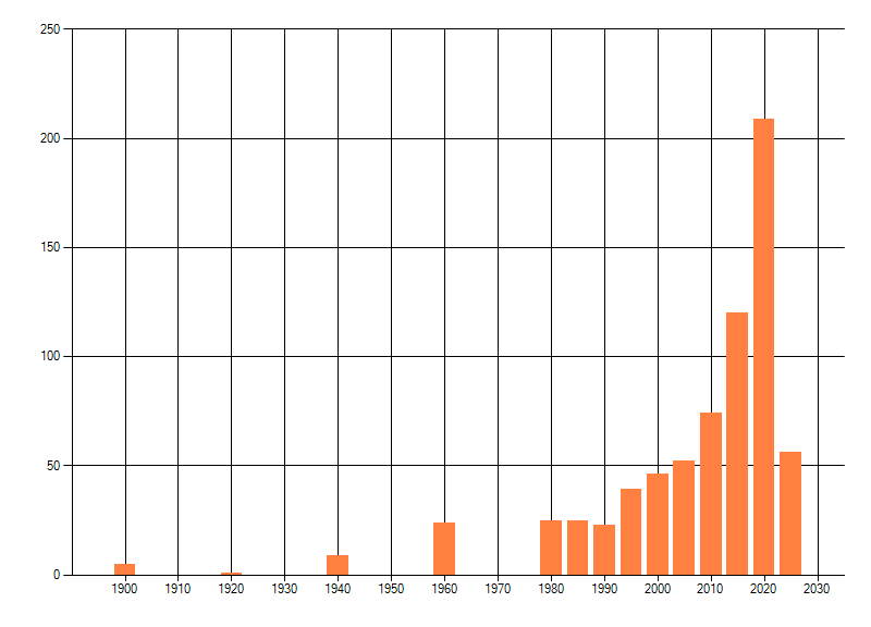 Het aantal atlasblokken (5x5 km) waarin de soort is gemeld binnen een periode van vijf jaar (vanaf 1980) of twintig jaar. Niet gecorrigeerd voor waarnemersinspanning en het aantal doorgegeven waarnemingen kan sterk variëren per periode, dus een trend in verspreiding kan hier niet direct uit worden afgelezen. Het opgegeven jaartal is het eerste jaar van de periode. Bron: gevalideerde waarnemingen uit de NDFF.