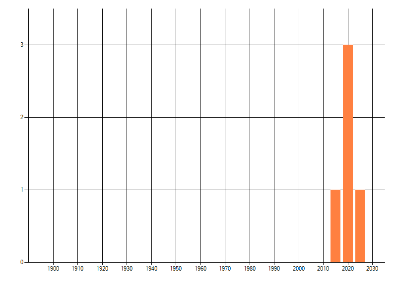 Het aantal atlasblokken (5x5 km) waarin de soort is gemeld binnen een periode van vijf jaar (vanaf 1980) of twintig jaar. Niet gecorrigeerd voor waarnemersinspanning en het aantal doorgegeven waarnemingen kan sterk variëren per periode, dus een trend in verspreiding kan hier niet direct uit worden afgelezen. Het opgegeven jaartal is het eerste jaar van de periode. Bron: gevalideerde waarnemingen uit de NDFF.