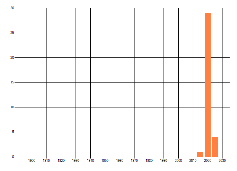 Het aantal atlasblokken (5x5 km) waarin de soort is gemeld binnen een periode van vijf jaar (vanaf 1980) of twintig jaar. Niet gecorrigeerd voor waarnemersinspanning en het aantal doorgegeven waarnemingen kan sterk variëren per periode, dus een trend in verspreiding kan hier niet direct uit worden afgelezen. Het opgegeven jaartal is het eerste jaar van de periode. Bron: gevalideerde waarnemingen uit de NDFF.