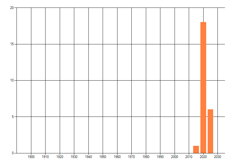Het aantal atlasblokken (5x5 km) waarin de soort is gemeld binnen een periode van vijf jaar (vanaf 1980) of twintig jaar. Niet gecorrigeerd voor waarnemersinspanning en het aantal doorgegeven waarnemingen kan sterk variëren per periode, dus een trend in verspreiding kan hier niet direct uit worden afgelezen. Het opgegeven jaartal is het eerste jaar van de periode. Bron: gevalideerde waarnemingen uit de NDFF.