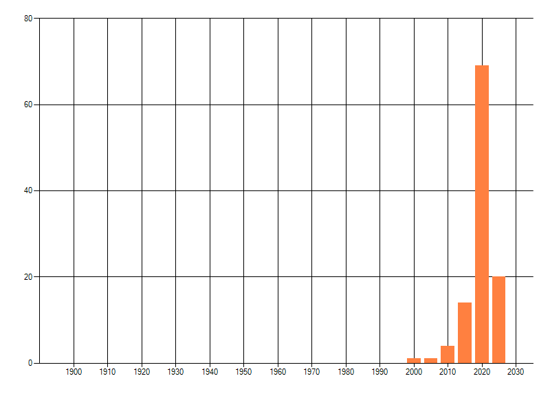 Het aantal atlasblokken (5x5 km) waarin de soort is gemeld binnen een periode van vijf jaar (vanaf 1980) of twintig jaar. Niet gecorrigeerd voor waarnemersinspanning en het aantal doorgegeven waarnemingen kan sterk variëren per periode, dus een trend in verspreiding kan hier niet direct uit worden afgelezen. Het opgegeven jaartal is het eerste jaar van de periode. Bron: gevalideerde waarnemingen uit de NDFF.